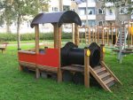AlgemeenDe Locomotief is klaar voor de start en wacht op het fluitsignaal!! Deze Locomotief ogende houten speelplaats is visueel zeer opvallend voor kinderen. Verkrijgbaar met glijbaan indien gewenst.