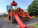 Château Aires De JeuxThis system has seven platforms each having different activities.It has a suspension bridge,two different height slides,rope bridge and many other activites.If you ask for motor function this is the system to go for !